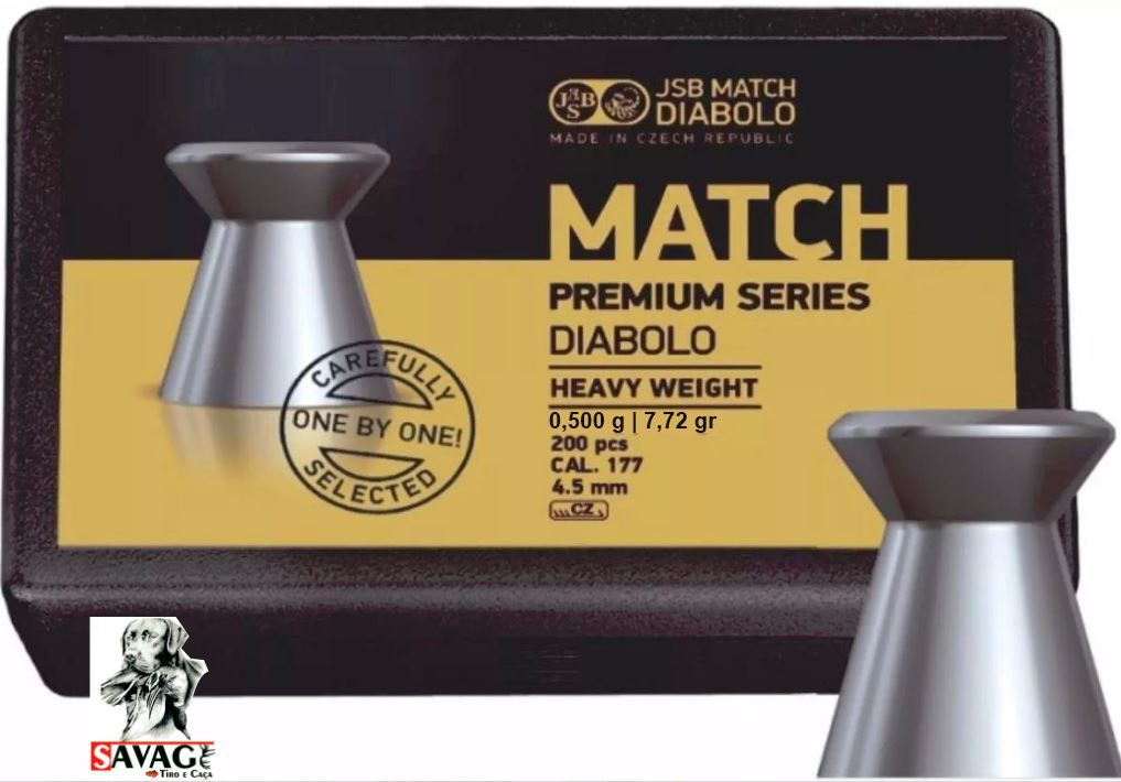 CHUMBINHO JSB MATCH PREMIUM DIABOLO 4.5mm 0,500 gramas e 7,72 grains COM 200 UNIDADES PESADAS CALIBRADAS EM 4.5mm e Calibre .177"